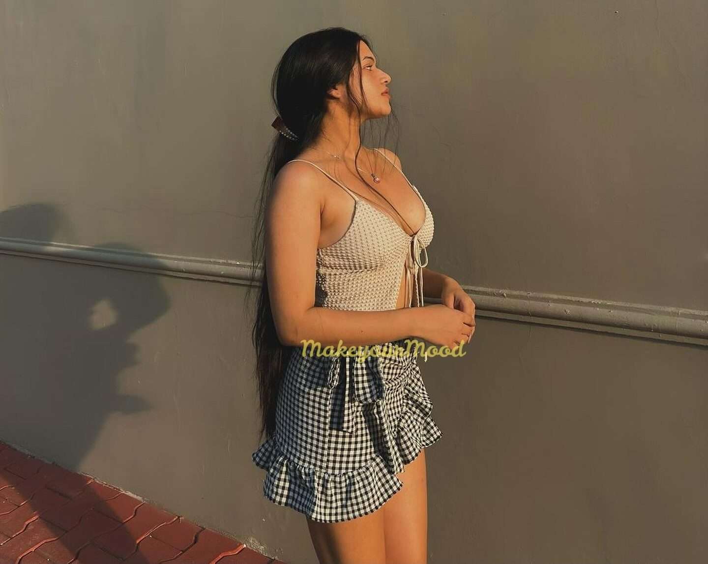 Her hair is a thick, luscious mane of dark curls that cascade down her back, framing her delicate features perfectly. Her eyes are like two shimmering pools of liquid brown, full of mystery and allure. They sparkle with mischief and promise, inviting you to get lost in their depths. Aashita’s smile is a work of art, a dazzling display of pearly whites that light up her entire face.